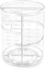 Get access to the items you want instantly via this carousel makeup holder. The hollowed-out compartments on the top plate are designed to store slim and tall makeup brushes. All items stay upright so you won’t waste time to lookup items through cluttered drawers.