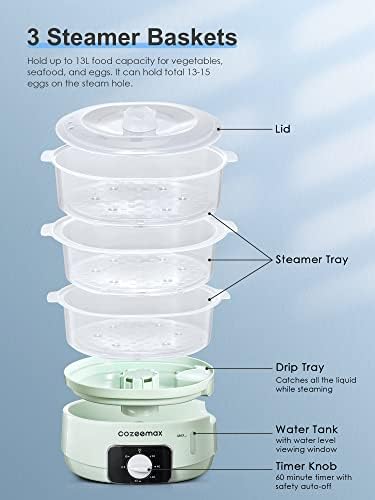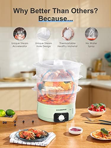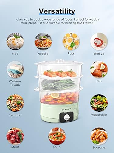 【Multi-purpose for Foods, Perfect for Weekly Meal Preps】Allow you to cook a wide range of foods simultaneously, ideal for steaming rice, vegetables, meat and fish, which provides one of the healthiest ways to cook, minimize the loss of nutrients and vitamins. It is also suitable for heating small towels.