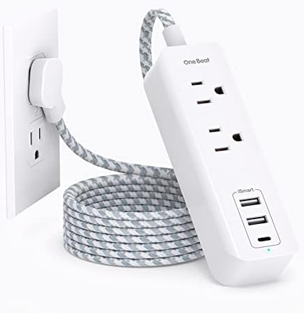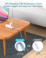 【Flat Plug Power Strip & Braided Flat Extension Cord】: The ultra thin flat plug is only 0.39 inch, and practical since it allows you to accommodate a piece of furniture without leaving space, 45-degree right-angled will not block the bottom receptacle of your duplex wall outlet. The 5ft braided flat plug extension cord with multi outlets, flexible and durable, great for home office dorm room use.