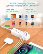 【USB C FAST Charge】: The mini power strip has 3 usb ports, USB-C port provides 5V/3.0A/15W fast charging, each USB-A port can intelligently charge up to 5V/2.4A. With smart charging technology, it can auto-detects your connected devices and can reach faster charging efficiency, would charge your cellphone, pad WITHOUT a variety of converters.