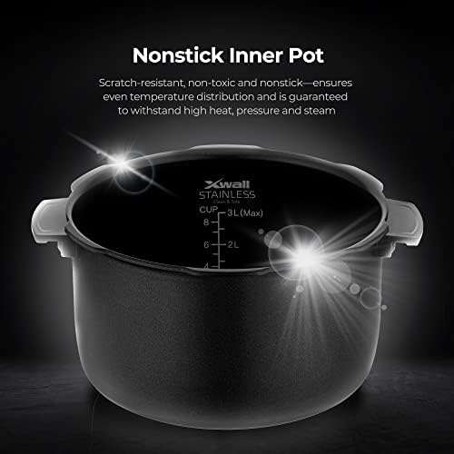 NONSTICK INNER POT: Features a durable 5-quart nonstick inner pot that allows for even temperature distribution and guaranteed durability through extreme heat, pressure and steam