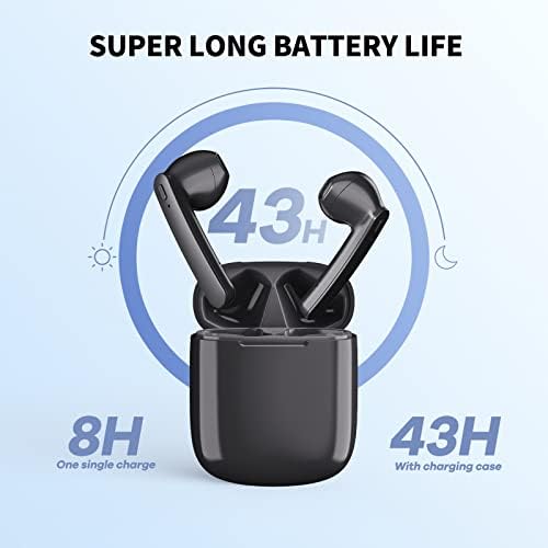 Long Battery Life: You can enjoy uninterrupted listening for up to 8 hours on a single charge! With the included charging case, you can get a total of 43 hours of listening time before needing to charge again! Experience the freedom of uninterrupted listening.