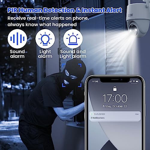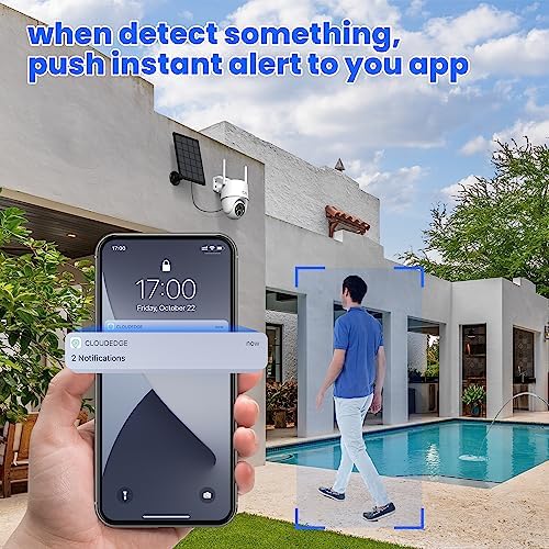 【Smart PIR Motion Detection and Instant Alert】: Our solar camera use advanced integrated PIR sensors, to accurately capture suspicious events and humans motions without false alarms. When detects a motion event, the camera can give out siren and spotlight alarm while sending an real-time notification to your phone, as well as max to 30 seconds of automatically recorded video, you can review it anytime.