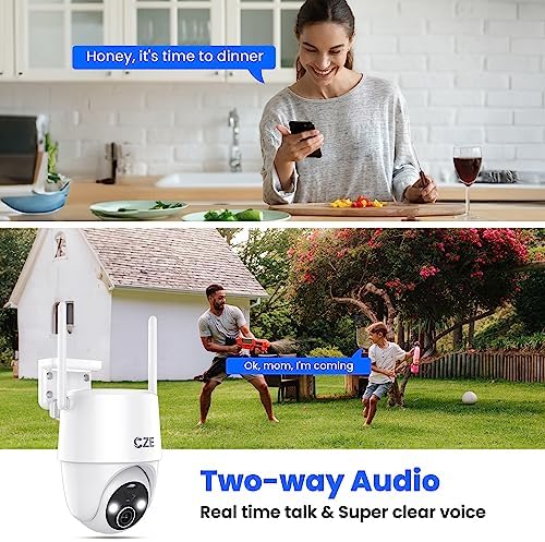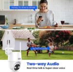 【Two-way talk and IP65 weatherproof】: support two-way intercom so you can talk to visitors face to face. Each interface of the camera is completely sealed and works well in rain and snow, this outdoor camera can work properly in temperature -20°C-60°C.