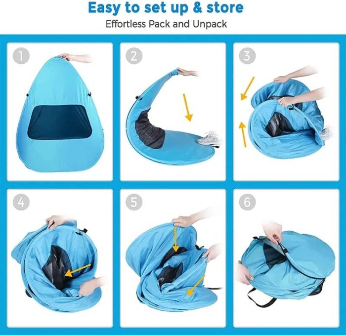 VERSATILE USE – Designed with a robust steel beam frame, this beach sun shelter is perfect for various outdoor activities such as beach outings, picnics in parks, hiking trips, fishing adventures, casual camping, visits to the lake, sporting events, concerts, or even playing in your backyard. Moreover, it can also serve as a play tent/playhouse for babies or kids indoors. It’s a wonderful summer gift that offers endless possibilities for enjoyment.