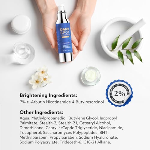 ADVANCED DARK SPOT CORRECTOR FORMULA – Formula contains α-ARBUTIN, Titanium Dioxide, Glutathione and other ingredients to assist sun protection, skin tone, reduce dark spots, age spots, sun spots.