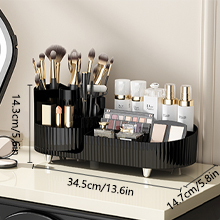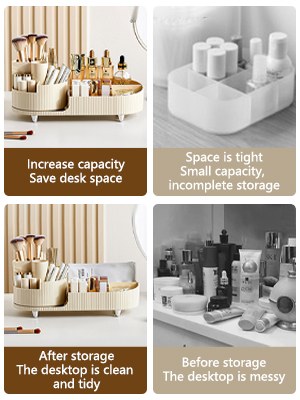 【Premium Material Swivel Makeup Brush Holder】- The Swivel makeup brush holder is made of durable, BPA and Chlorine free, shatter-resistant plastic, which ensures its durability and security from injury and breakage. Cosmetic storage box requires no installation and can be used directly.