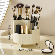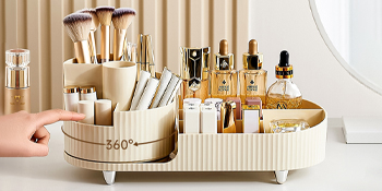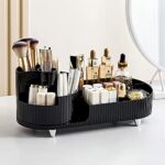 Organize your beauty essentials with ease using this 360-degree rotating makeup brush organizer on the left