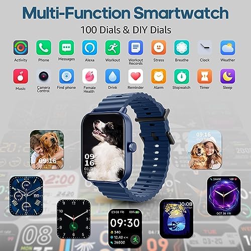 【Alexa Built-In & Multifunction】Enjoy the convenience of Alexa on your wrist! The Alexa assistant is built into the smart sports watch. You can control your smart home devices, set reminders, and more from your wrist. Voice feedback is provided through the speaker. Android iOS smart watch for men women comes with useful daily functions, including alarms, timer, music control, weather forecast, drinking reminder, camera control, help us live more convenient, smarter and healthier.