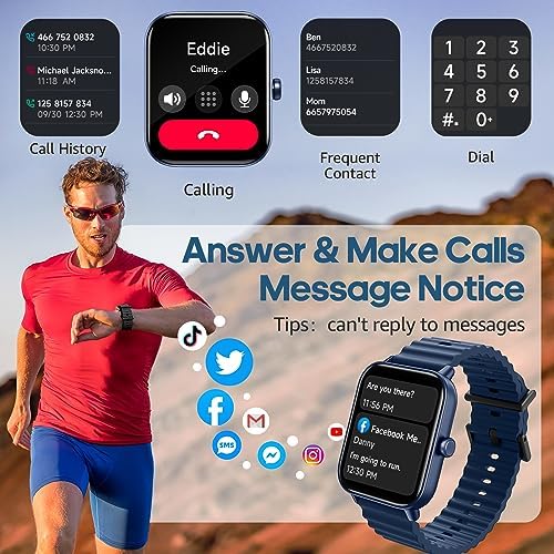 【Make/Answer Calls & Read Message】Smart watch for android iOS phones with a built-in speaker, when connected to your phone via Bluetooth, you can answer/dial clear calls directly from your smartwatch. You can also read app message notifications (the watch can’t send or return SMS, Bluetooth distance 8-10 meters). With smartwatch for women and men, you don’t miss any important information when you are working out or can’t reach your phone.