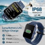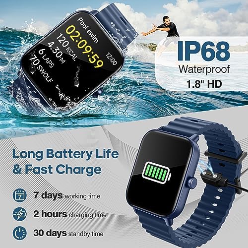 【1.8” Large Touch HD Screen & DIY Dials】With the latest upgraded technology, this fitness watch for men women equipped with 1.8 inch ultra clear full touch colour screen, smooth and sensitive. The app also provides 100+ exquisite dials, you also can DIY watch background as you like. Running watch suitable for a variety of wearing scenarios, change freedom between sports and leisure, show your unique personality. What you will receive: smart watch*1, charger*1, replaceable strap*1