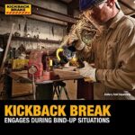 Kickback Brake engages when a pinch, stall, or bind-up event is sensed and the electronic brake engages with maximum force to quickly stop the wheel, reduce the movement of the metal grinder and shut the grinder off.