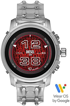 Home Sports & Outdoor Diesel Men’s Griffed Gen 6 45mm Stainless Steel Touchscreen Smart Watch, Color: Silver (Model: DZT2040V)