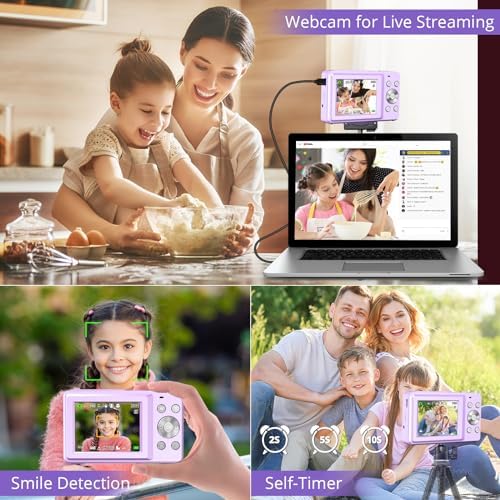 𝗨𝗡𝗟𝗘𝗔𝗦𝗛 𝗬𝗢𝗨𝗥 𝗖𝗥𝗘𝗔𝗧𝗜𝗩𝗜𝗧𝗬: The kids camera can be used as a webcam for live streaming and vlog recording. Built-in flashlight ensures you take clear photos even in low-light conditions. With features like anti-shake, self-timer, time stamp, video pause, face and smile detection, and continuous shooting, this multifunctional compact camera lets your kids unleash their creativity and foster interest in photography.