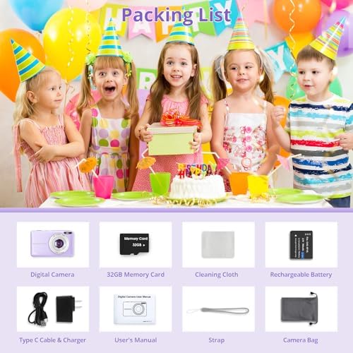 𝗣𝗘𝗥𝗙𝗘𝗖𝗧 𝗚𝗜𝗙𝗧 𝗙𝗢𝗥 𝗞𝗜𝗗𝗦 & 𝗪𝗔𝗥𝗥𝗔𝗡𝗧𝗬: Rest assured with an 18-month FREE refund and replacement warranty. The small camera for teens comes with a 32GB TF card, a rechargeable battery, a Type-C cable, an adapter, and other accessories, ensuring it’s ready to use right out of the box. It is a perfect gift for boys, and girls as their first camera on birthdays or other important holidays!