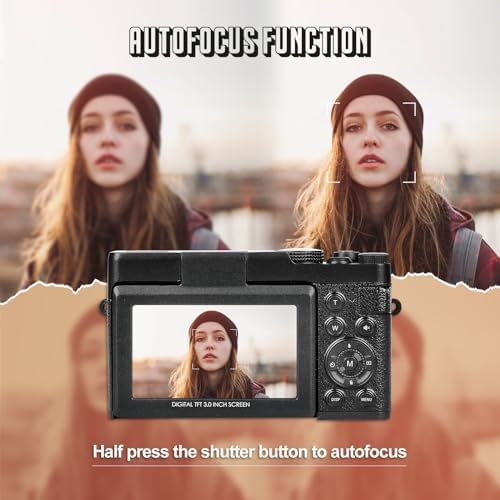 【16X Great Cameras for Photography】The vlogging camera supports 16X digital zoom, video pause, recording while charging, loop recording, continuous shooting, beauty function and selfie. Adopting the latest upgraded chip to ensure higher definition and more realistic camera images. Especially the beauty feature, it can help you catch the attention of others and win more likes on social media platforms at once.This is the best gift for friends and family.