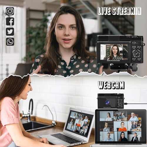 Home Electronics Digital Camera, Cameras for Photography,4K&48MP Video Camera, 16X Zoom Vlogging Camera for YouTube, Portable Compact Small Camera with 2 Batteries, Digital Point and Shoot Camera with Beauty Function