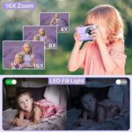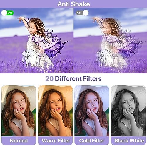 Multi Function Camera Adds Shooting Fun: includes functions such as 16x zoom, self-timer, continuous shooting, facial recognition, and smile recognition, as well as a pause function that allows you to pause while recording or watching videos; The built-in fill light can help you take high-quality photos in the dark. 20 types of filters give you different photography experiences.