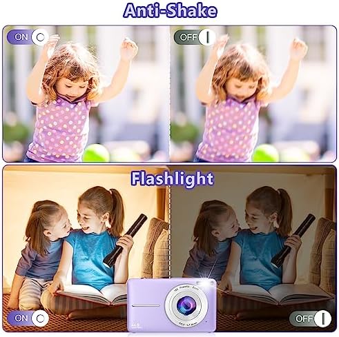 【Compact and Portable】: Weighing only 0.56lb and featuring a 2.5-inch screen, this compact digital camera for kids is smaller than a cell phone, making it easy to carry with you anywhere you go. With 2 rechargeable batteries and an automatic turn-off setting, it’s perfect for vacation trips and camping.