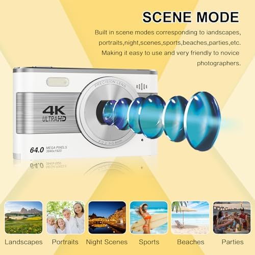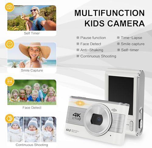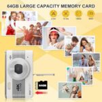 💝【Charming Appearance】Based on kids preferences, This kids camera design colour with pearl white and brushed silver, Deeply loved by boys, girls,Once you have this point and shoot digital cameras, you will be fondle admiringly. It is smaller than iphone, Weighing only 0.5lb, This pocket camera is lightweight with high-class materials for kids and teens to hand-held, Easy to carry anywhere with you.