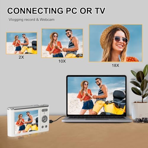 💝【Vlogging Record & Webcam】This rechargeable digital cameras for teens is equipped with fill light, You can shoot images or videos in low light condition or in the darkness. This vlogging camera can be used as a webcam for YouTube /Skype /TikTok /Facebook live streaming or make video calls with your family or friends; also you can connect the digital video camera to TV via usb cable to playback HD photos or videos.