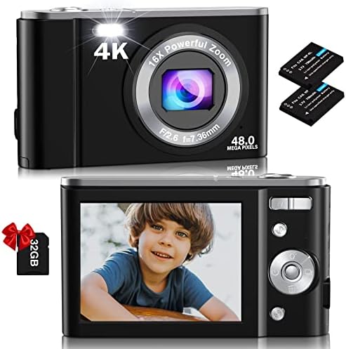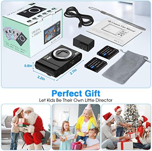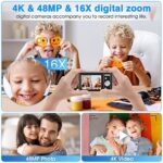 【Video Camera and Two Batteries】Support 4K video mode, built-in microphone. You can record smoother, more stable and clearer video. The 4K digital camera comes with two rechargeable batteries, so you don’t have to worry about running out of power when you travel. This digital camera for teens also supports recording while charging, you can also use an USB cable to connect the camera to an additional power bank of charging, and transfer photos and videos to your computer. Let the children record beautiful trips, excursions, school life, and be their own directors.