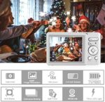 【Multifunction Mini Camera 】Digital video camera supports autofocus>1M, face recognition, smile capture, continuous shotting, 19 photo effects, selfie timer, flash and anti-shake function.