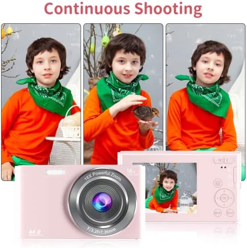 Home Electronics Camera Digital Camera, Saneen FHD 2.7K Cameras for Photography, 44MP Kids Camera Compact Point and Shoot Camera Small Camera for Beginners, Kids and Teens with 32GB SD Card & 16X Digital Zoom-Pink
