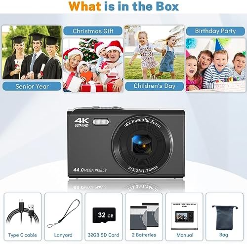 🎁【Desirable gift and perfect after-sale】 🎁 From easy to access buttons to simple functions menu, this is a digital camera more suitable for entry-level users, not suitable for professional photographer,It’s a wonderful gift for your older parents and young children to record every wonderful moment of their life. We provide a one-year satisfaction warranty, along with a no-hassle replacement policy, any problem, please contact us for help.