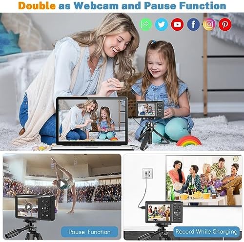 📸【Doubles as A Webcam & Pause Function】📸 Built-in microphone,connect to PC and work as webcam to video calling & live streaming. This sturdy digital camera is quick to transfer your pictures to the PC via USB cable, so you can share your wonderful moments to social media. The 4k digital youtube camera for vlogging have an excellent PAUSE FUNCTION which allows you to continue recording in the same File without restarting a new one.