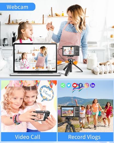 📷【Vlogging Camera with Webcam Function】This Compact Pocket Camera can be used as a computer camera. Turn off the camera first, connect the camera to the computer with a USB cable, choosing the “Camera mode”, you can have a video calls with your friends and family or livestreaming on tiktok youtube. The external 1/4 standard size tripod interface can be installed with a tripod to help you stabilize shooting or recording on your vlog.