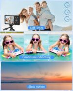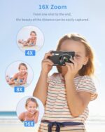 📷【16X Digital Zoom Point and Shoot Digital Camera】This sturdy digital camera supports 16x digital zoom, You can zoom in or zoom out the subject by pressing the W/T button while recording video and taking still images. The 4k digital youtube camera for teens also has a pause function, you can press the “OK button” to pause when recording or playing a video. Designed with 2.4″IPS screen, which can present more natural and colorful images, and it’s also a good protection for kids’ eyes.