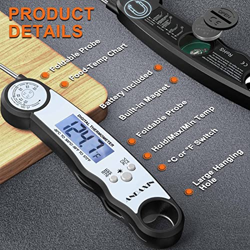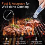[IP65 Waterproof & Convenient Storage] – Quickly clean the digital meat thermometer under running water; features a magnetic back to allow for placement on any metal surface or use the hang hole for hooks with bottle opener function.