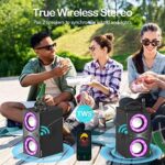 【TWS function】&【Outdoor bluetooth speakers】- Quickly pair two DINDIN wireless bluetooth speakers to get real surround sound immediately. It is especially suitable for indoor lectures, outdoor bonfires, camping or parties. The sound of the two speakers is synchronized to create left and right dual-channel sound, which can bring you powerful and shocking sound quality and an unprecedented listening experience.
