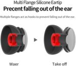 Premium silicone and 2~3 layers of multi-flange design provide both fit and sound isolation.