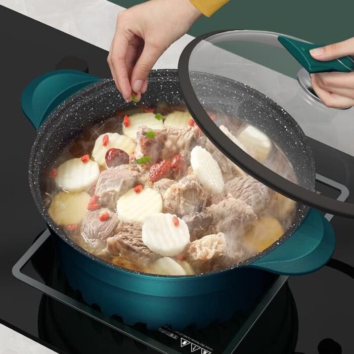 Built to Last: The body part of this cooking pots with lids is made of iron with a non-stick coating. Very sturdy and practical. The visual glass cover can well observe the state of the food. Suitable for all kinds of stoves.
