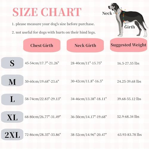 2XL — Chest Girth:72-86cm/28.35″-33.86″, Neck Girth:38-52cm/14.96″-20.47″, Suggested Weight:63.93-83.78 lbs;