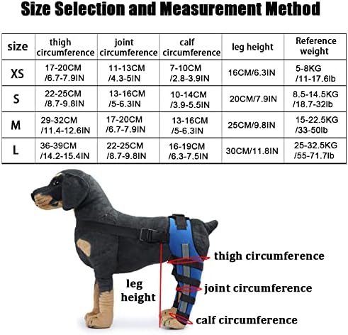 5. Adjustable Design: The dog acl knee brace support has 4 sizes, such as XS, S, M, L for your choice. Adjustable dogleg straps with Velcro help you tighten or loosen the stand for the desired effect