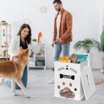 【CONVENIENT STORAGE AND SPACIOUS ACCESS】This dog toy basket is large enough to store a variety of pet supplies such as toys, snacks, treats, leashes, etc. And is designed with a lid on the top to prevent dust from entering and keep the stored items clean. The bottom of our dog toy box is designed with the hollow shape of your pet’s paw, your favorite pet can easily pull out the toys they want from the bottom.