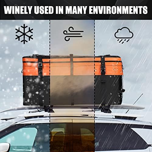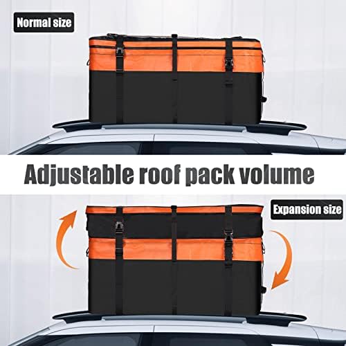 Home Sports & Outdoor Domende Car Rooftop Cargo Carrier Bag Waterproof 14-21 Cubic Feet Expandable with Heavy-Duty Straps and Buckles, Soft Shell Luggage Storage Bag for Most Cars, Vans and SUV