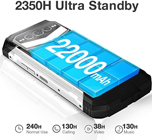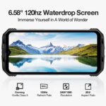 【Experience Visual Brilliance and Immersive Sound】Indulge in a visual feast on the 22000mAh 4G rugged phone 120Hz 6.58″ Full HD+ waterdrop screen. The 19:9 aspect ratio, 480nits brightness, and 120Hz refresh rate provide smooth visuals and immersive viewing. Enhancing the experience further are the dual Hi-Res speakers, delivering superior audio quality and depth. Whether gaming, watching videos, or scrolling through content.
