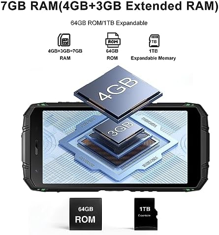 ⚡⚡【64GB Storage & AI Triple Camera 】DOOGE S41 pro rugged smartphone with 13MP Triple Rear Cameras, allowing you to freely capture the moments and beauty of the world. and stunning selfies with a 8MP front-facing camera to capture crisp moment. 7GB RAM(4GB+3GB Extended RAM) and 64GB ROM (available for expanding micro SD card up to 1TB – SD card not included rugged phone unlocked ensures enough storage to store the images.
