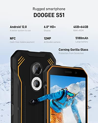 🔋【Large 5180 mAh Battery】This rugged phone has a size of 6.5*3.2*0.57” and a portable user-friendly weight of 9.38oz. Doogee S51 series rugged smartphone unlocked boasts an amazing 5180 mAh battery that can offer all-day power for your outdoor adventures or long-shift work without recharging. And advanced Doogee fast-charging technology makes fast charging faster.