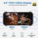 【120Hz & 6.58″ Full HD+】DOOGEE V MAX 22000mAh 5G rugged phone features 6.58″ Full HD+ vivid waterdrop screen, 2408*1080 resolution, 401 PPI, 19:9 Aspect Ratio, 480nits brightness, 120Hz refresh rate display and dual Hi-Res speakers to enhance more realistic audiovisual experience, smoother touching on hands while in playing games, watching videos, scrolling content and more.