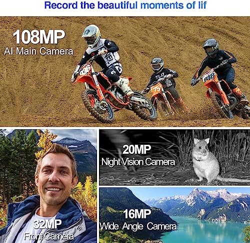 【108MP Main Camera】2023 waterproof DOOGEE VMAX 5G 22000mAh outdoor long-lasting rugged phone with 108MP main camera upgraded, 32MP front-facing camera to shoot ultra-high-resolution pictures, capture ultra clear moments as memory. 20MP night vision camera allows you to unveil the beauty of the night with astonishing clarity.