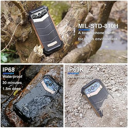 【IP68/IP69K and MIL-STD-810H】Android 12 rugged smartphone is made of tough stuff and complies with harsh environments using standards which is passed IP68/IP69K and MIL-STD-810H tests outstandingly. Feature excellent protective military grade rugged cell phone is hassle-free on dropping from 6FT height onto the ground, fully submerging into 4FT depth water 30mins, dusty or sandy complete covering
