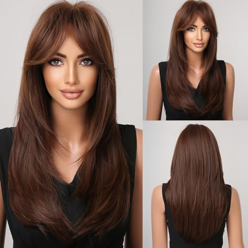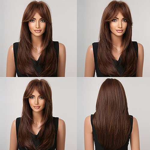 【Get A Surprise Wig】This beautiful long brown wig with bangs can be used not only as a daily use,but also for cosplay parties,showing your confidence and beauty in minutes.Also it will bring you more surprises,you can trim the long straight wigs as you like,what’s more,it can be dyed and permed (the temperature is controlled under 150 ℃),you will get a new fashionable wig for long hair.