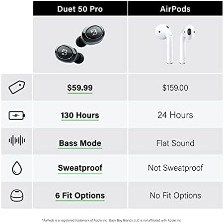 [Back Bay Signature Sound] These long battery life earbuds are tuned in our Boston HQ to produce the rich tone of the classic American hi-fi stereos – strong bass, natural midrange, and crisp highs. The Duet 50 Pro’s have a full, vibrant sound