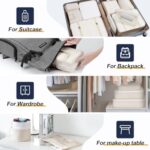 Innovative Makeup Bag Accessories: Compared with other travel organizer bags, our luggage organizer bags offer a cylindrical makeup bag accessories, offering extra storage for cosmetics, skincare and toiletries. The travel packing cubes also contains 1 underwear bag, 1 shoe bag, 1 drawstring laundry bag, and 2 mesh zipper pouches.