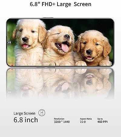 【6.8″ FHD+ 120Hz display】:The 5g phone is 6.8’’HD + full screen display with 21:9 aspect ratio, resolution 3200 x 1440 , with a 120 Hz refresh rate. Scroll, swipe, and enjoy all your entertainment effortlessly on this stunning display. Full of high-quality texture, it is the best gift for family and friends.